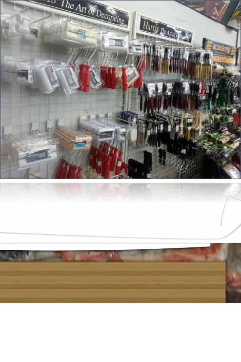 All painting supplies (e.g. brushes, rollers, sandpaper, mutton cloth, adhesives and abrasives) are kept in stock.